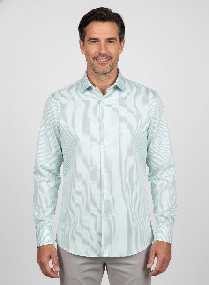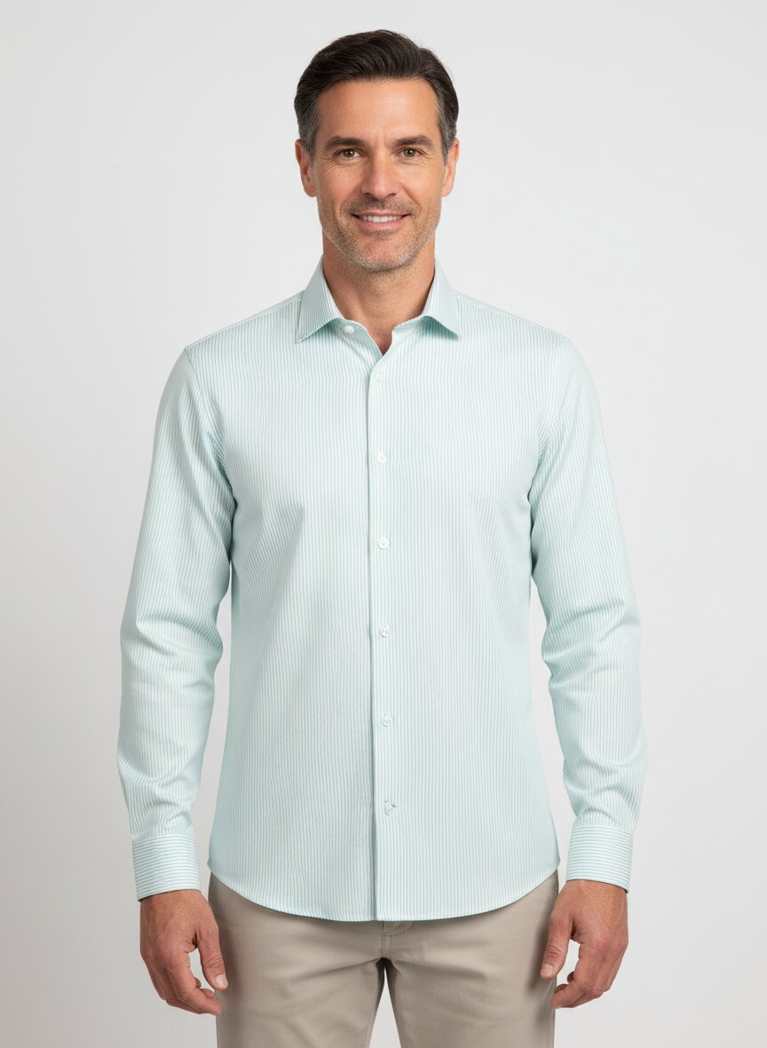 Hemd, Slim Fit, Baumwolle, mintgrün gestreift