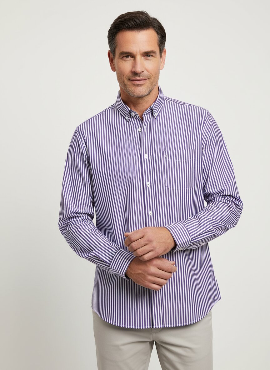 Hemd, vl-Mivara-TF, Tailor Fit, Baumwolle, lila-weiß gestreift