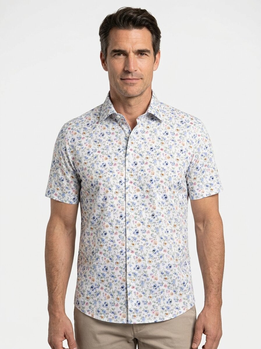 Kurzarmhemd, Body Fit, Baumwoll-Stretch, Kent, multicolor floral