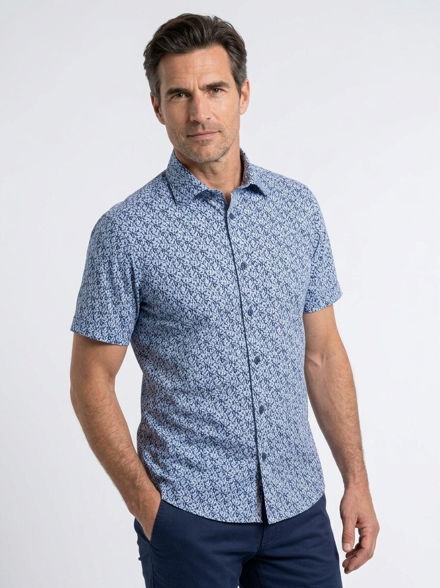 Kurzarmhemd, New Modern, Jersey, Kent, blau gemustert