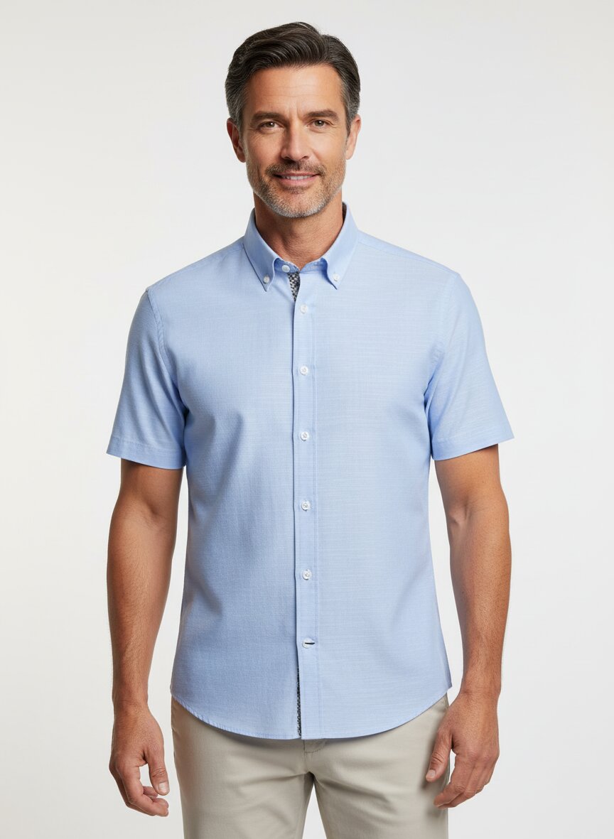 Für jeden Anlass das richtige Modell: Langarmhemden für Business und elegante Anlässe, Kurzarmhemden für entspannte Sommertage. Beide Varianten folgen derselben europäischen Qualitätsphilosophie.