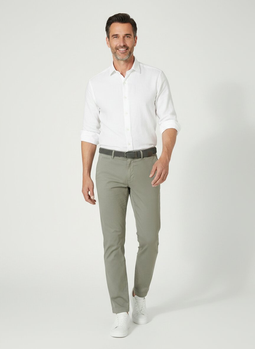 Chino mit verlängertem Bund, seitlichen Einschubtaschen, geknöpften Gesäßtaschen