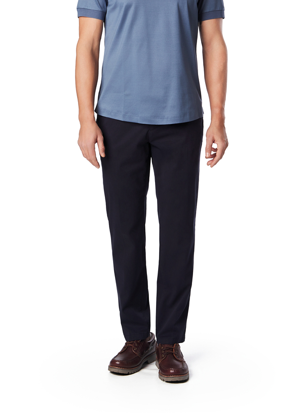 Werner Baldessarini wollte eine Alternative zur klassischen Anzughose schaffen, die trotzdem business-tauglich bleibt. Das Ergebnis: Chinos mit der Eleganz eines Anzugteils, aber dem Komfort einer modernen Freizeithose. Italienische Baumwoll-Gabardine sorgt für den edlen Fall.
