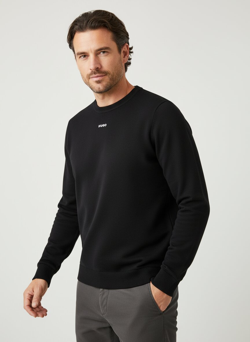 Das reine Schwarz und die feine Strickstruktur schaffen eine schlichte, aber präsente Silhouette, die jeden Look verfeinert. Die 100%-Baumwolle liegt angenehm auf der Haut und bietet optimale Atmungsaktivität – ideal für wärmere Tage, ohne dabei an Eleganz einzubußen. Der klassische Rundhalsausschnitt und die präzise Verarbeitung machen diesen Pullover zum vielseitigen Begleiter zwischen Business und Urban. Die moderate Rückenlänge von etwa 67 cm bei Größe M sorgt für eine moderne Passform ohne Übermaß. HUGO verbindet seit 1993 rebellischen Geist mit BOSS-Qualität – dieser Feinstrick-Pullover verkörpert diese Philosophie: klare Form statt Kompromiss, monochrome Kraft statt Ablenkung.Unser Tipp: Kombinieren Sie den schwarzen Pullover mit einer hellen Chino und Loafern für einen eleganten Freizeit-Look, oder tragen Sie ihn unter einem Sakko für dezente Business-Raffinesse.