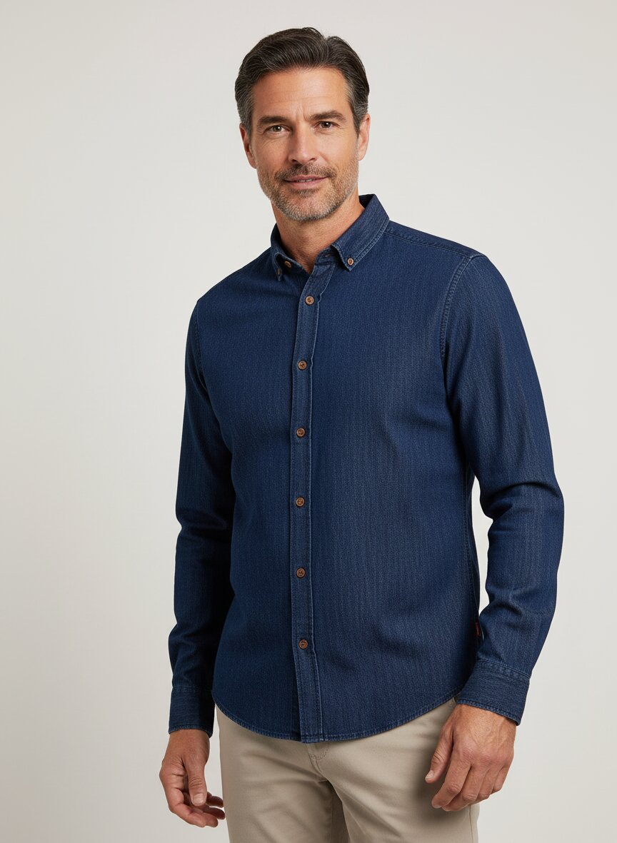 Klassisches Jeanshemd mit markanter Button-Down-Struktur