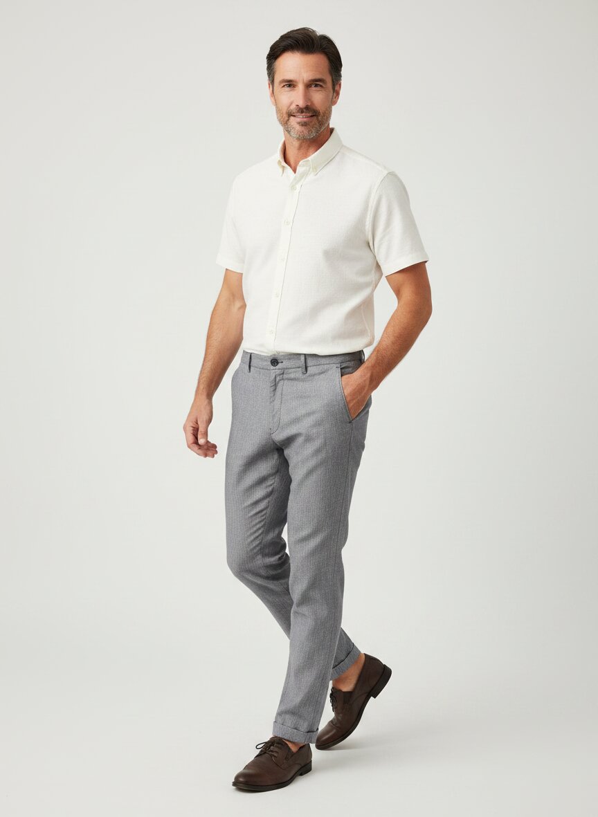 Die dunkelblau melierte Chino Matthew ist perfekt für Frühling und Sommer geeignet. Die klassische dunkle Farbe macht sie vielseitig kombinierbar – von casual mit T-Shirt bis smart-casual mit Hemd.