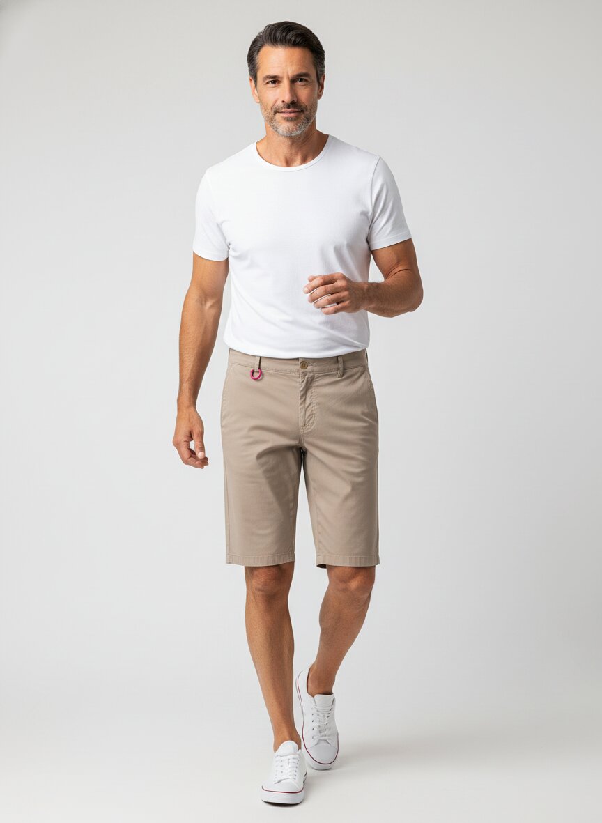 Die Shorts haben einen Regular Fit, der eine klassische, komfortable Passform bietet – weder zu eng noch zu locker geschnitten.