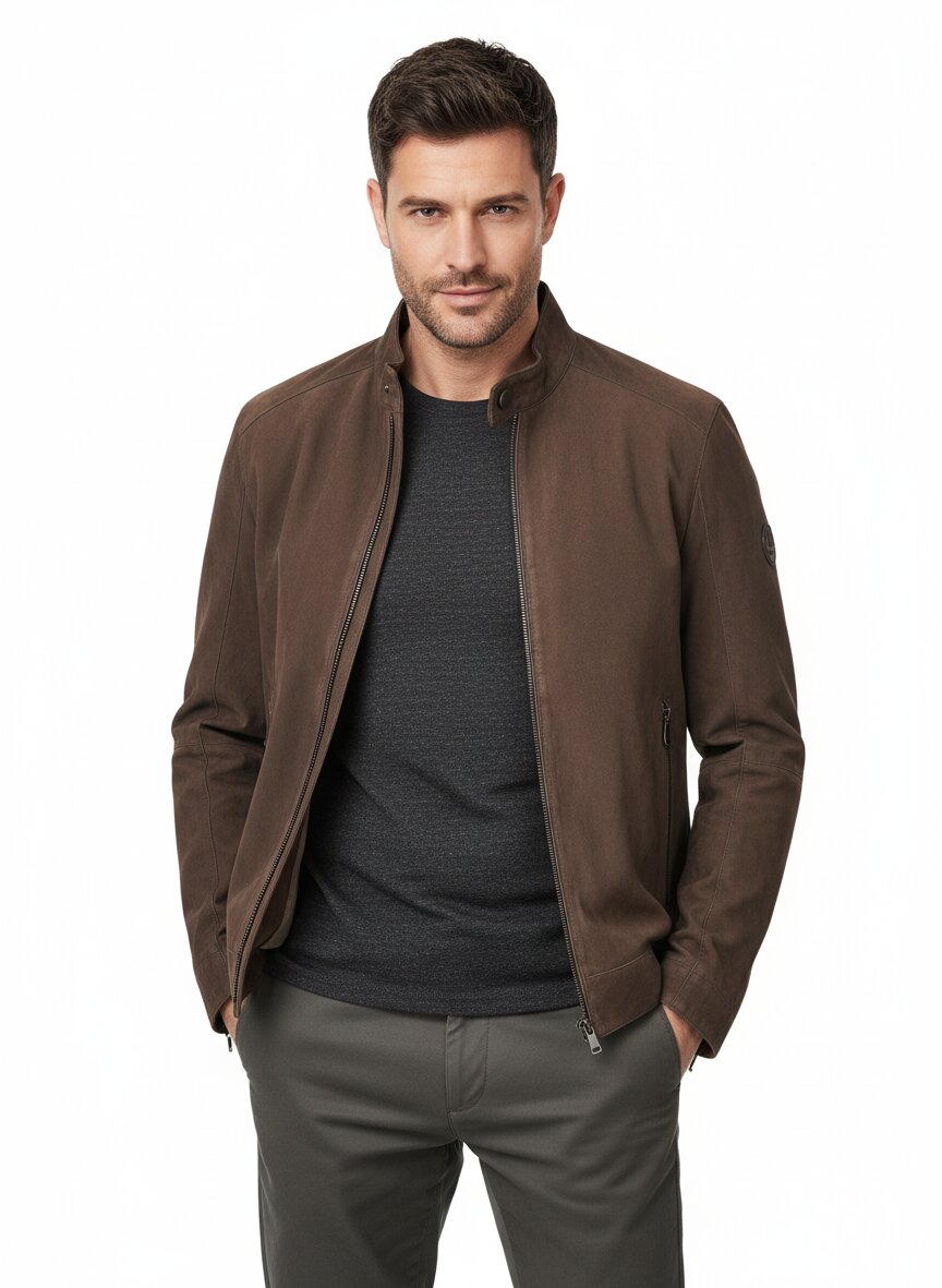 Das samtig-weiche Ziegenvelours in warmem Braun definiert diese Lederjacke durch seine natürliche Oberflächenstruktur und subtile Farbvariationen – charakteristische Merkmale eines hochwertigen Naturmaterials. Die geschmeidige Haptik liegt angenehm auf der Haut und entwickelt mit der Zeit eine persönliche Patina, die den Tragekomfort noch erhöht. Der prägnante Stehkragen mit Druckknopf-Lasche und der durchgehende Reißverschluss verleihen ihr eine urbane, moderne Silhouette zwischen Casual und Statement-Piece. Seitliche Reißverschlusstaschen bieten praktischen Stauraum, während das Baumwoll-Polyester-Futter (62% Baumwolle, 38% Polyester) für angenehme Träglichkeit sorgt. JOOP! setzt mit der Modellreihe Ason auf deutsche Designtradition: klare Schnitte, handwerkliche Präzision und die Wahl edler Naturmaterialien, die sich bewusst vom Massentrend abheben.Unser Tipp: Kombinieren Sie die Jacke zu einer dunklen Jeans und weißem Hemd für einen zeitlosen Urban-Look, der Qualität und Haltung ausstrahlt.