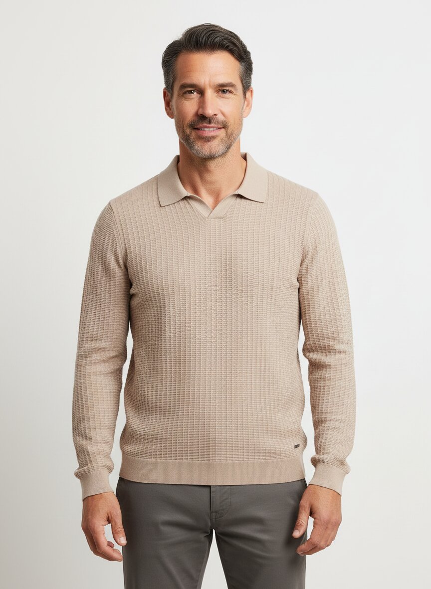 Das charakteristische Waffelstrickmuster verleiht diesem Pullover eine markante Oberflächentextur, die Tiefe und Bewegung schafft. Die reine Baumwolle sitzt angenehm auf der Haut, atmet zuverlässig und behält ihre Form über lange Zeit – ein Material, das mit jedem Tragen angenehmer wird. Der Umlegekragen und die knopflose Blende geben dem Galdino einen modernen, ungezwungenen Charakter zwischen Alltag und Smart Casual. Die großzügige Schnittführung mit einer Rückenlänge von etwa 66 cm bei Größe M ermöglicht entspanntes Tragen über Hemden oder als eigenständiges Statement-Piece. JOOP! verbindet deutsche Designpräzision mit urbanem Selbstverständnis – jedes Stück trägt die Handschrift einer Marke, die Qualität und Individualität gleichberechtigt denkt.Unser Tipp: Kombinieren Sie den Pullover mit einer taillierten Chino in Beige und Loafern für einen mühelosen Frühjahrslook, der Substanz mit Eleganz verbindet.