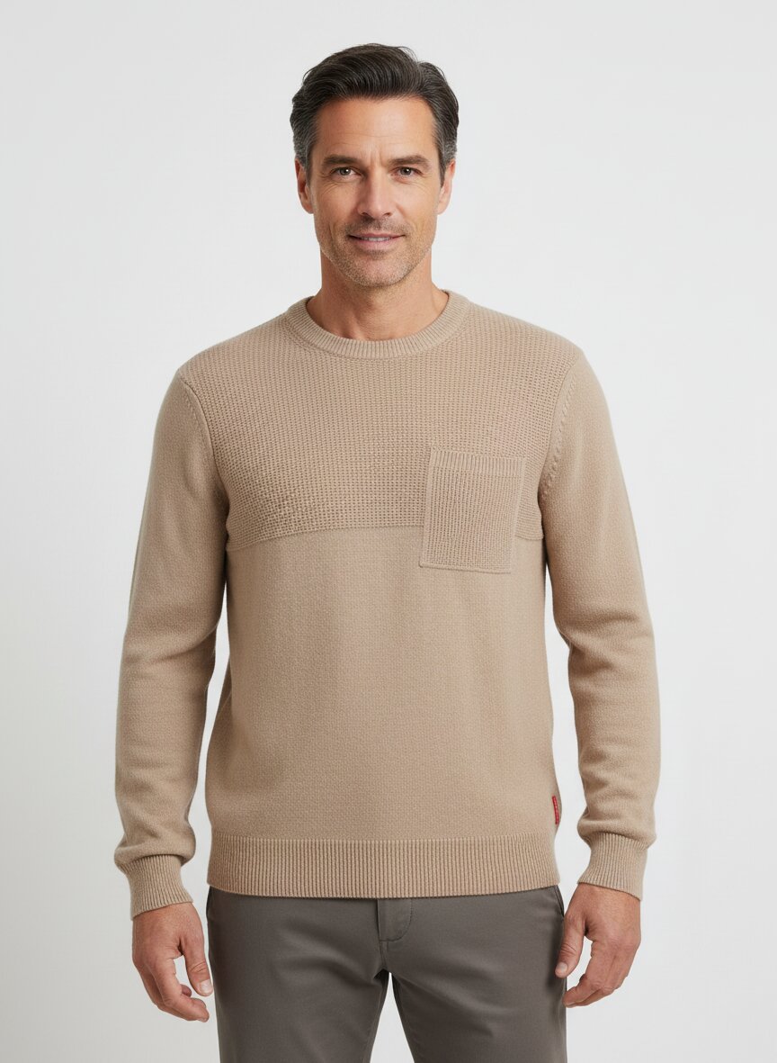 Dieser Pullover besticht durch seine feine Strickstruktur, die dem klassischen Beige optische Tiefe verleiht und ihn deutlich von glattem Jersey abhebt. Die reine Baumwolle liegt angenehm auf der Haut, atmet zuverlässig und bewahrt ihre Form über lange Zeit – ideal für den häufigen Wechsel zwischen Büro und Freizeit. Mit Rundhals und dezenter Brusttasche funktioniert das Modell Owin sowohl zur Chino als auch zum Business-Hemd. Die klassische Silhouette bei Größe M mit etwa 70 cm Rückenlänge und 106 cm Brustweite bietet komfortablen Tragekomfort ohne Übermaß. JOOP! verbindet deutsche Designpräzision mit urbaner Moderne – jedes Stück erzählt von klarer Linienführung und hochwertiger Verarbeitung.Unser Tipp: Kombinieren Sie den Pullover mit einer dunklen Chino und Loafern für einen zeitlosen Smart-Casual-Look, oder tragen Sie ihn offen über einem weißen Hemd für mehr Struktur.