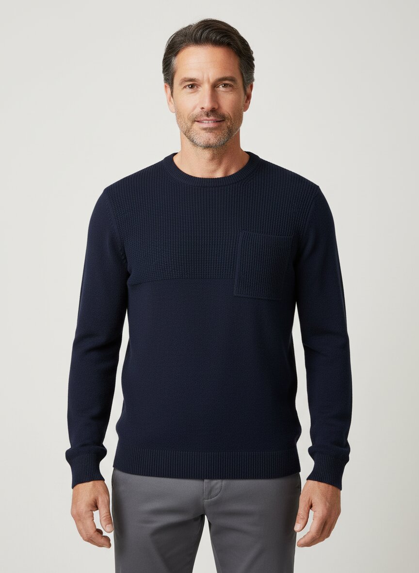 Pullover mit Rundhals-Ausschnitt, Brusttasche
