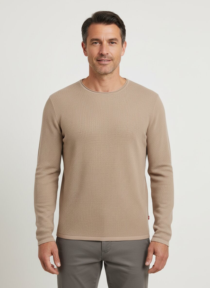 Die feine Struktur des Strickgewebes verleiht diesem Pullover optische Tiefe und verhindert Monotonie – ein subtiles Detail, das den JOOP!-Anspruch unterstreicht. Die reine Baumwolle liegt weich auf der Haut und bietet optimalen Tragekomfort ohne zu beschweren, während die strukturierte Oberfläche kleine Unebenheiten kaschiert und langlebig bleibt. Der klassische Rundhals mit Rollkante schafft eine zeitlose Silhouette, die sowohl im Business als auch in der Urban-Casual funktioniert. Mit einer Rückenlänge von etwa 69 cm bei Größe M sitzt der Svenor proportional ausgewogen und lässt sich problemlos layern. JOOP! verbindet deutsche Designpräzision mit urbanem Selbstbewusstsein – jedes Stück ist eine bewusste Wahl, nicht eine Notwendigkeit.Unser Tipp: Tragen Sie den Pullover über einem weißen Hemd und kombinieren Sie ihn mit einer dunklen Anzughose für einen gehobenen Freizeit-Look, oder setzen Sie ihn zu einer Chino und Loafern für mühelose Eleganz.