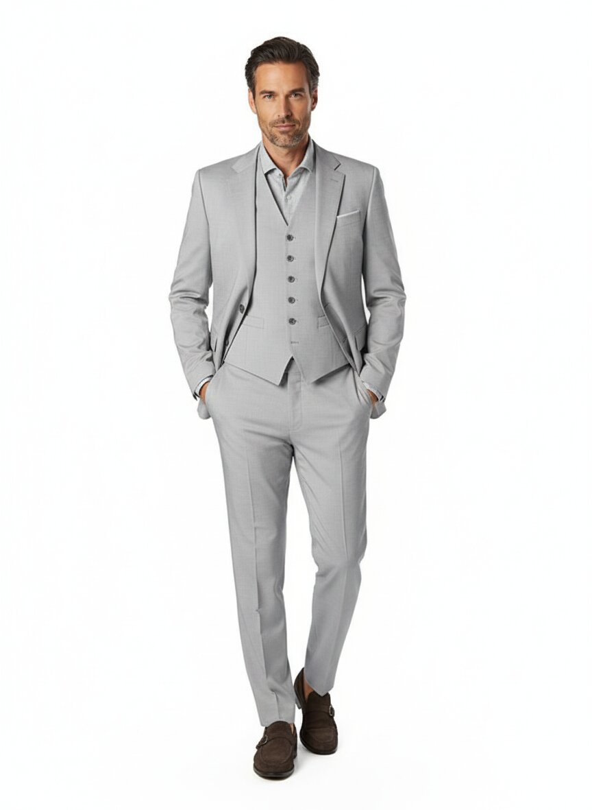 Dreiteiliger Hochzeitsanzug in edel schimmernder Grau-Melange