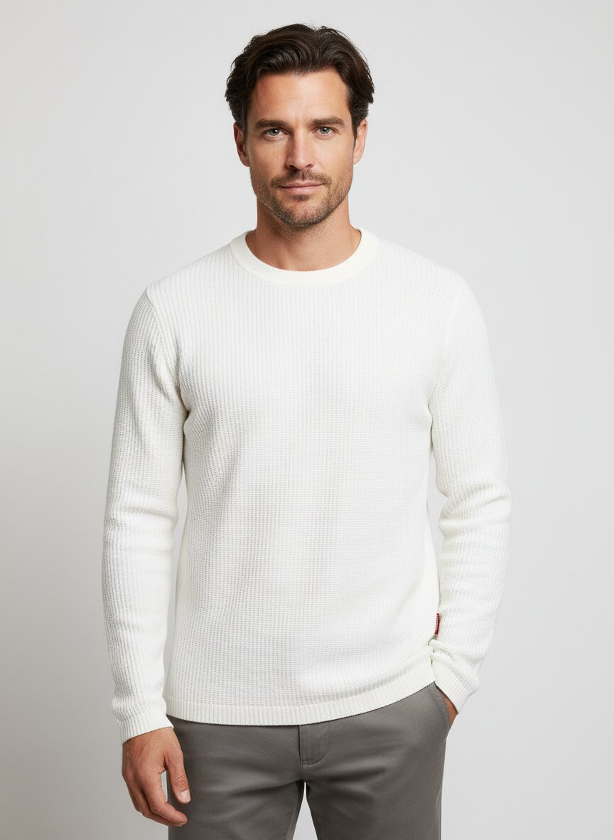 Cremefarbenes Longsleeve mit strukturierter Oberflächenoptik