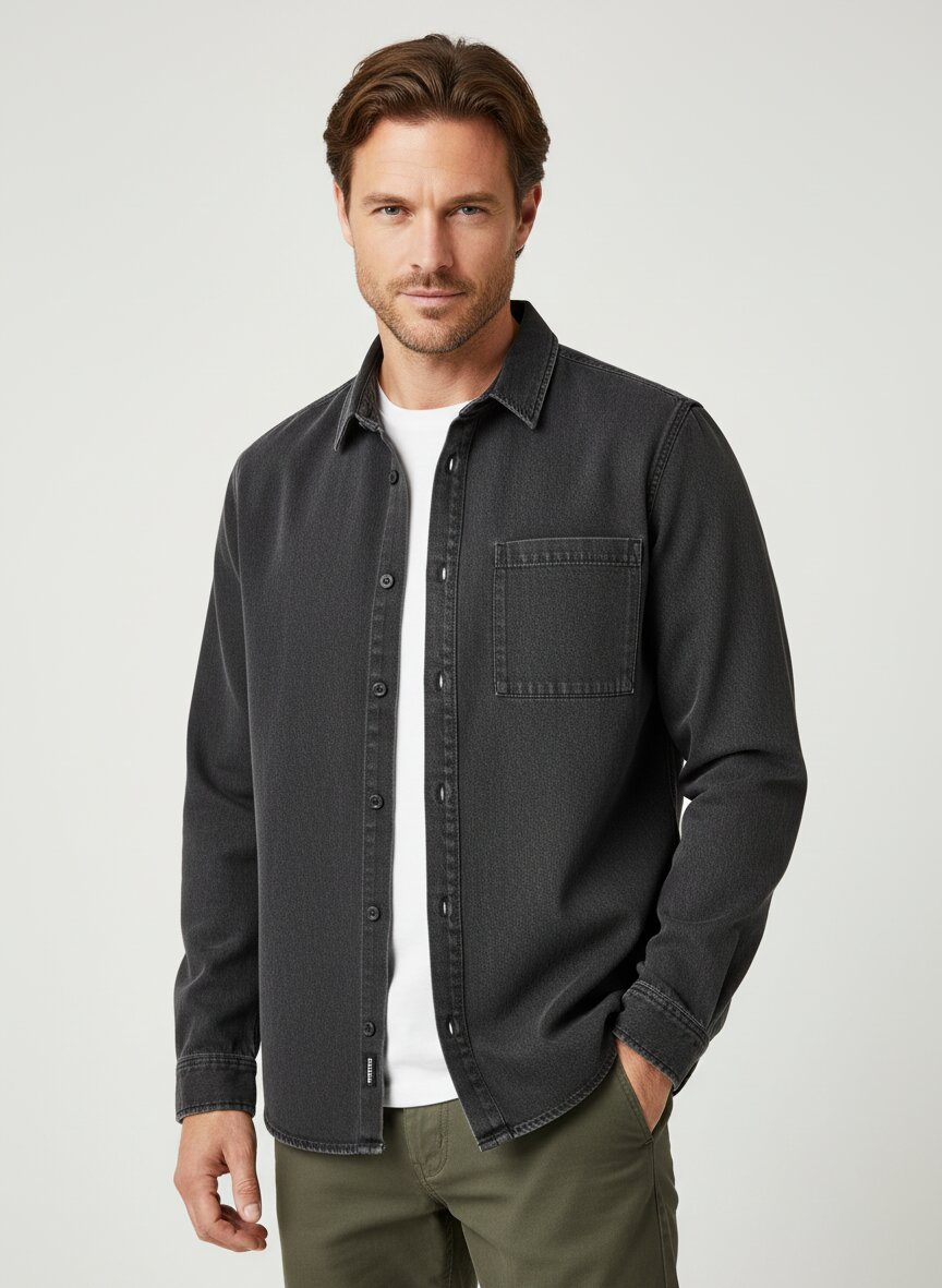 Die verdeckte Knopfleiste verleiht diesem schwarzen Jeanshemd eine minimalistische Eleganz, während der klassische Kentkragen für zeitlose Vielseitigkeit sorgt. Das hochwertige Lyocell-Mischgewebe fühlt sich seidig-weich an und reguliert Feuchtigkeit optimal – ideal für lange Tage. Die cleane Optik macht das Hemd zum perfekten Begleiter für urbane Casual-Looks oder entspannte Business-Kombinationen. Eine praktische Brusttasche und Sportmanschetten runden das durchdachte Design ab. Juvia steht seit 2013 für luxuriöse Loungewear aus außergewöhnlich weichen Materialien – hier trifft Komfort auf zeitlose Eleganz.Unser Tipp: Tragen Sie das Hemd offen über einem weißen T-Shirt zur dunklen Jeans für einen lässig-modernen Look.