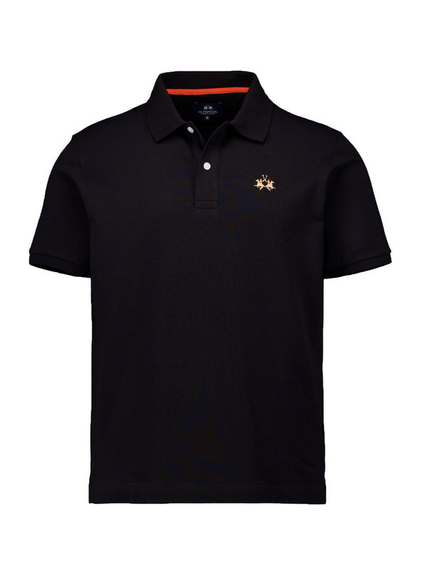 Der schwarze Grundton wird durch einen feinen mehrfarbigen Stickerei-Unterkragen aufgebrochen, was dem klassischen Design Charakter und visuelles Interesse verleiht – ein authentisches Detail der La Martina Handwerkskunst.