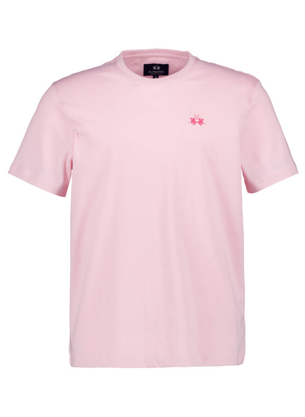 Dieses T-Shirt besticht durch sein feines Rosé-Ton und die hochwertige Jersey-Baumwolle, die sich samtweich auf der Haut anfühlt und atmungsaktiv bleibt. Der verstärkte Rundhals-Ausschnitt mit innerer Einfassung sorgt für Langlebigkeit und sitzt angenehm am Nacken, ohne zu drücken. Im Regular Fit liegt das Shirt entspannt und lässig am Körper – ideal für Alltag, Freizeit und entspannte Sommertage. Die dezente Stickerei auf Brusthöhe trägt das charakteristische LA-MARTINA-Logo und unterstreicht die subtile Eleganz des Designs. LA MARTINA verbindet seit fast vier Jahrzehnten argentinischen Polo-Spirit mit europäischer Handwerkskunst – dieses T-Shirt verkörpert genau diese Balance zwischen sportlichem Erbe und zeitloser Eleganz.Unser Tipp: Kombinieren Sie das rosafarbene Shirt mit einer dunkelblauen Leinenhose und weißen Sneakern für einen frischen, sommerlichen Look, der mühelos wirkt.