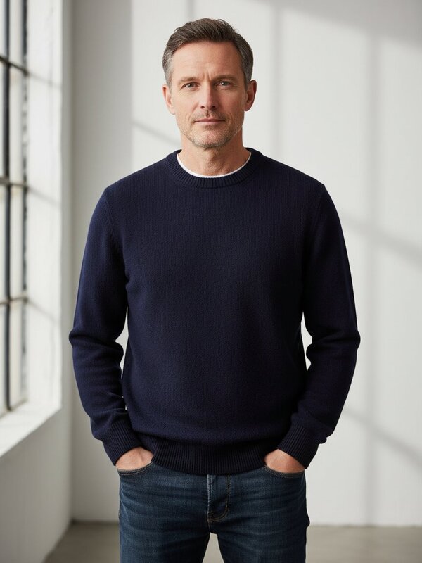 Dieses Pullover verbindet 50 % edles Kaschmir mit 50 % feiner Schurwolle zu einer Melange, die zeitlos und kraftvoll wirkt. Die Faser liegt samtweich auf der Haut und entwickelt durch ihre natürliche Wärmespeicherung ein unvergleichliches Tragegefühl – auch an kälteren Tagen bleibt sie angenehm leicht. Der klassische Rundausschnitt und die schlichte Silhouette machen ihn zur vielseitigen Basis für Business und Freizeit gleichermaßen. Mit einer Rückenlänge von etwa 67 cm bei Größe 50 sitzt der Pullover elegant und präzise geschnitten. MAERZ München steht seit Jahrzehnten für deutsche Pullover-Handwerkskunst – jedes Stück entsteht nach höchsten Qualitätsstandards im Hause.Unser Tipp: Kombinieren Sie den Navy-Pullover mit einer hellen Wollhose und Lederschuhen für einen zeitlosen Business-Casual-Look, oder tragen Sie ihn lässig über einem weißen T-Shirt für entspannte Wochenenden.