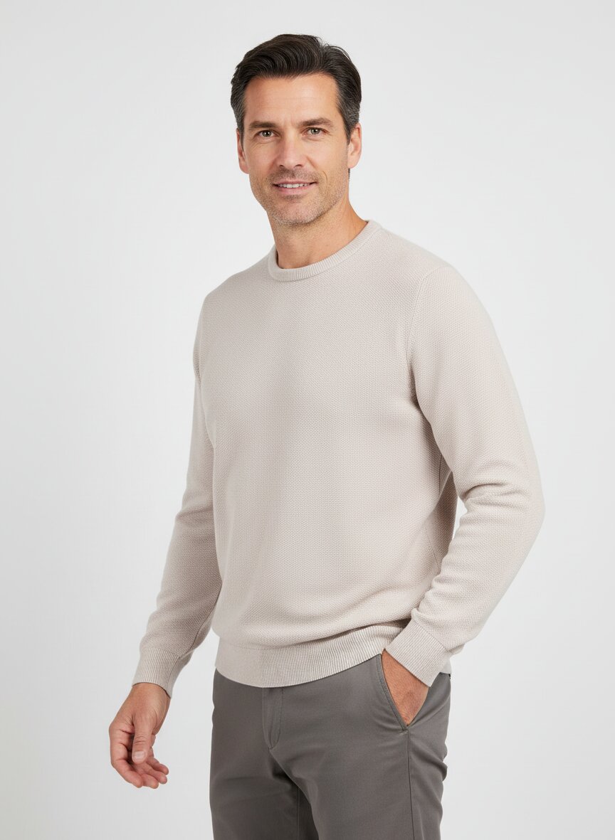 Die sand melierte Färbung verleiht diesem Pullover eine natürliche, zeitlose Eleganz, die sich mühelos in jeden Kleiderschrank integriert. Der atmungsaktive Piqué-Strick aus 100 % zertifizierter Bio-Baumwolle liegt angenehm auf der Haut und reguliert Feuchtigkeit optimal – ideal für wechselhafte Übergangstage. Mit seinem klassischen Rundausschnitt und schlanken Schnitt funktioniert er gleichermaßen im Business-Casual wie beim entspannten Wochenende. Die europäische Verarbeitung und das OEKO-TEX®-Zertifikat garantieren höchste Standards bei Material und Verarbeitung. MAERZ München steht für nordeuropäische Understatement-Qualität – präzise Schnitte, nachhaltige Materialien, zeitlose Farben ohne Trends.Unser Tipp: Kombinieren Sie den Pullover mit einer hellen Leinenhose und weißen Sneakern für einen frischen, sommerlichen Look oder layern Sie ihn unter einer Leinenbluse für kühle Frühjahrstage.