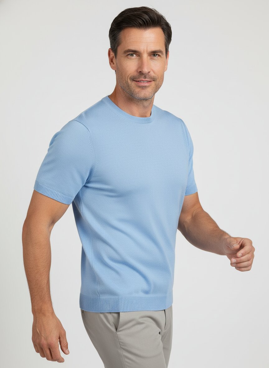 MAERZ Muenchen, Kurzarmpullover, Merinowolle extrafein, hellblau