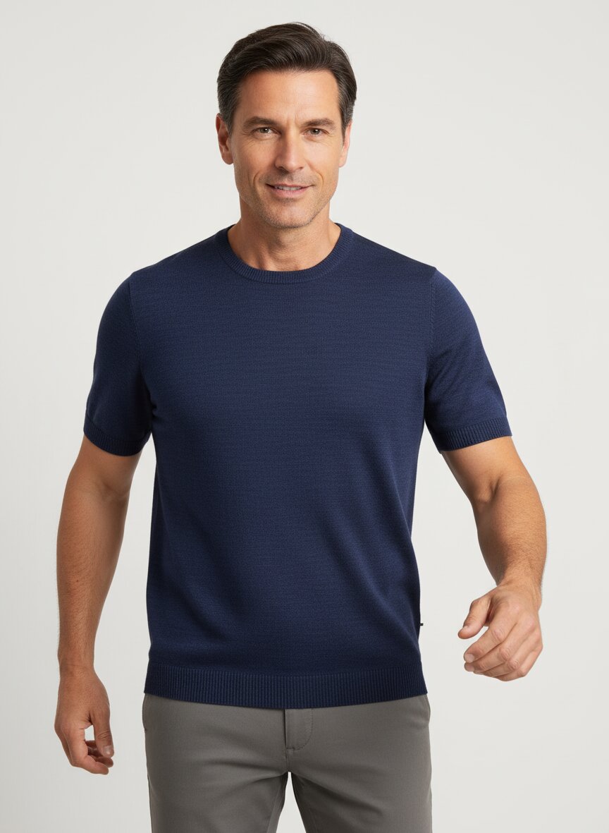 MAERZ Muenchen, Kurzarmpullover, Merinowolle extrafein, dunkelblau