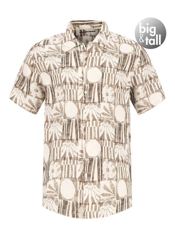 Marc O'Polo, Kurzarmhemd, Big&Tall, Reines Leinen, Kent, braun gemustert