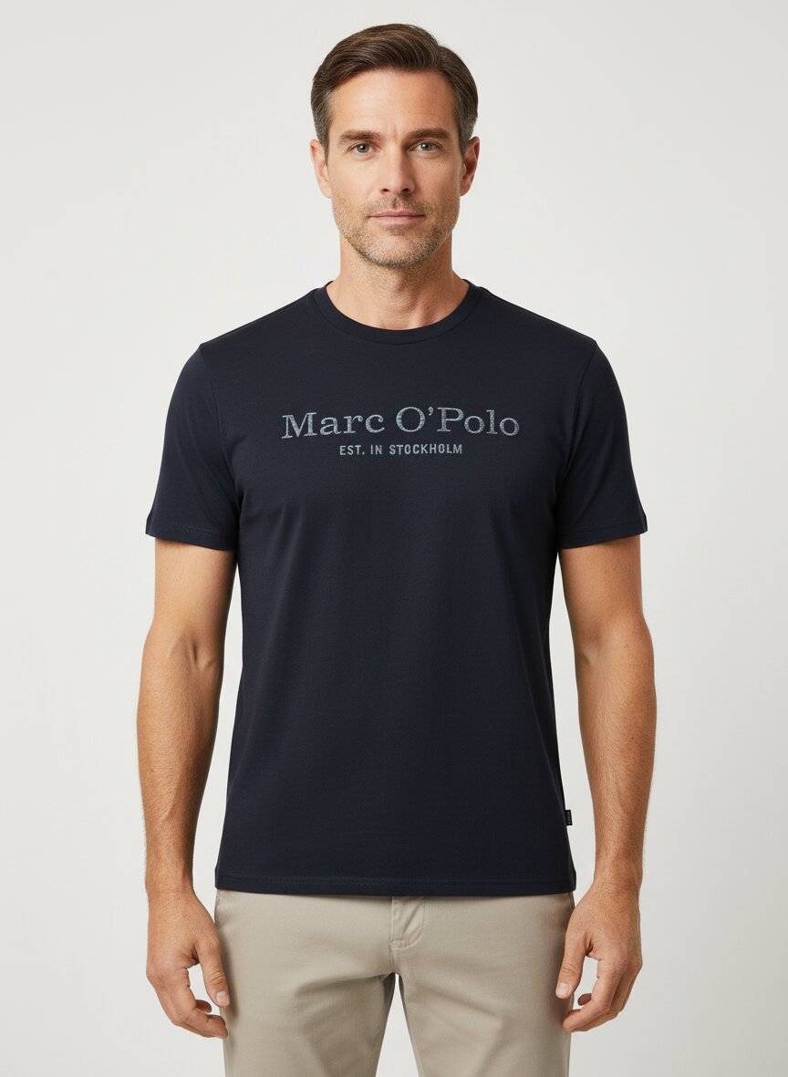 Das tiefe Navy verleiht diesem T-Shirt zeitlose Eleganz, während der plakative Logo-Schriftzug auf der Front für einen selbstbewussten Akzent sorgt. Die reine Bio-Baumwolle fühlt sich weich auf der Haut an und reguliert die Körpertemperatur natürlich – ideal für lange Tage. Im urbanen Alltag oder beim entspannten Wochenende macht der Regular Fit eine lässige Figur. Der verstärkte Einfass im Nackenbereich erhöht die Langlebigkeit und verhindert unschönes Ausleiern. Marc O'Polo steht seit 1967 für skandinavischen Minimalismus und nachhaltige Materialien – authentischer Casual-Luxus ohne überflüssige Details.Unser Tipp: Kombinieren Sie das Shirt mit einer hellen Chino und weißen Sneakern für einen frischen Sommer-Look.