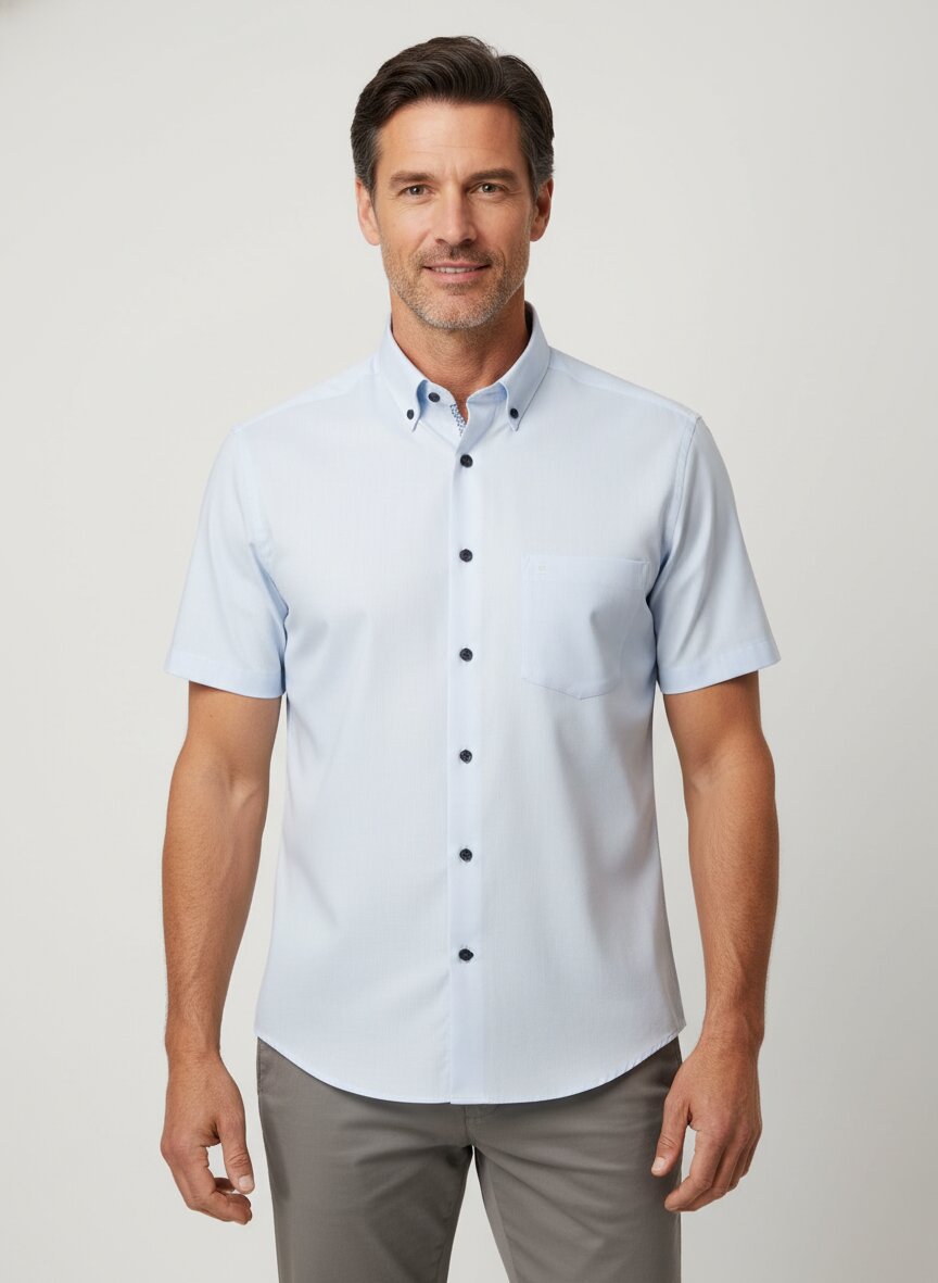 Kurzarmhemd, Body Fit, Baumwoll-Stretch, Kent, bleu
