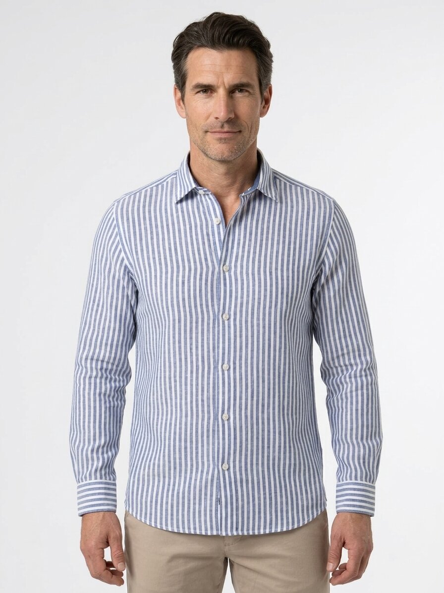 Hemd, Regular, Reines Leinen, Kent, hellblau gestreift
