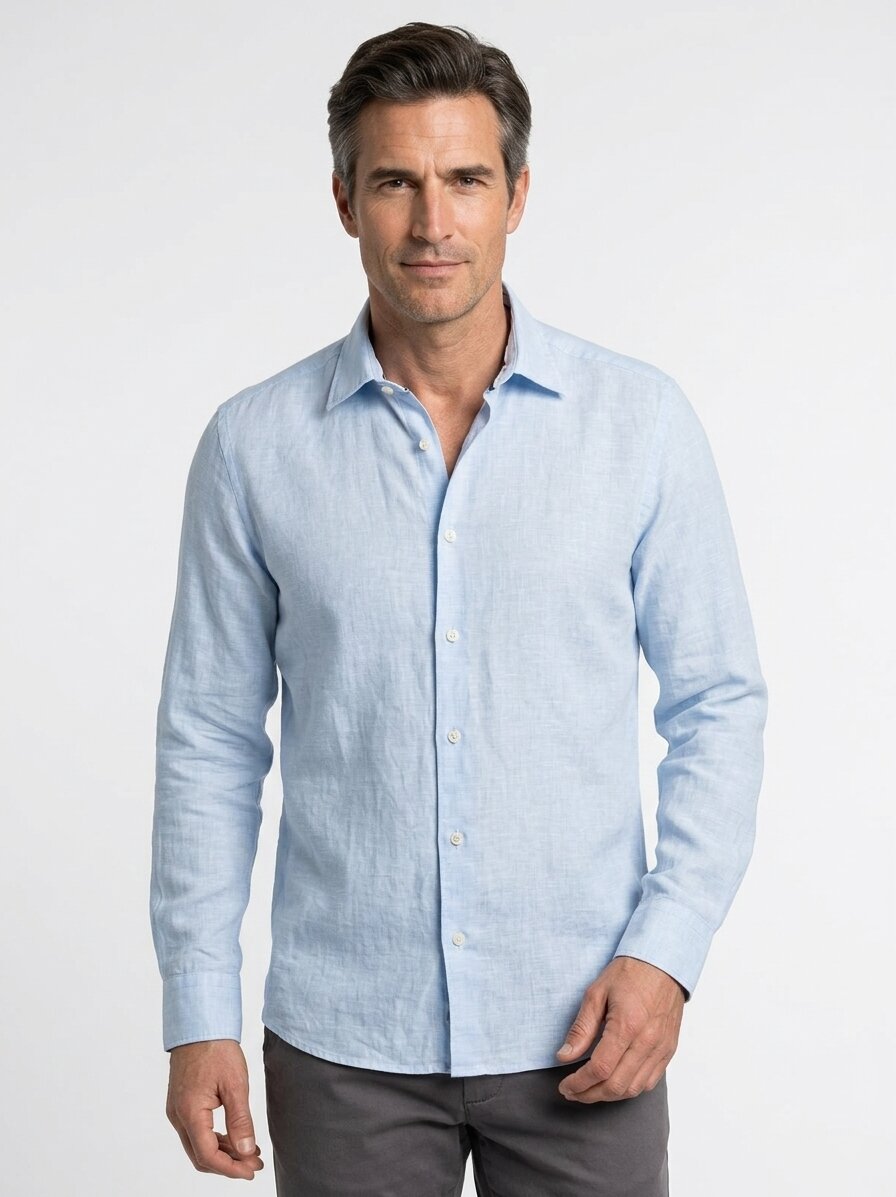 Hemd, Regular, Reines Leinen, Kent, hellblau