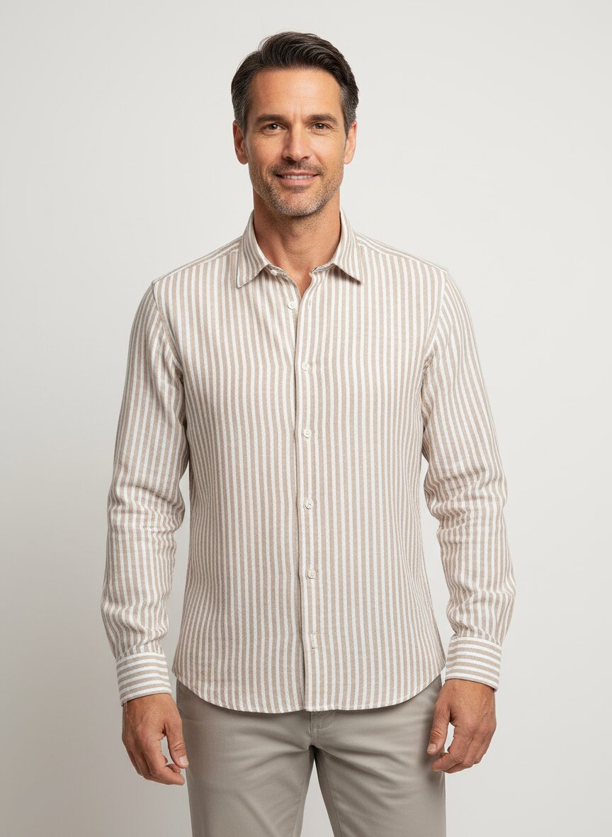 Hemd, Regular, Reines Leinen, Kent, braun gestreift