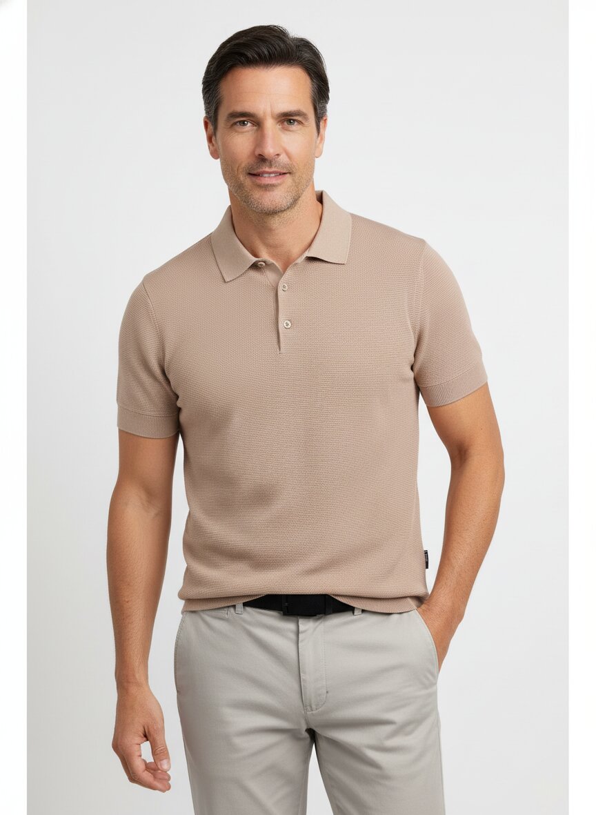 Polo-Shirt, Baumwoll-Strick, sand strukturiert