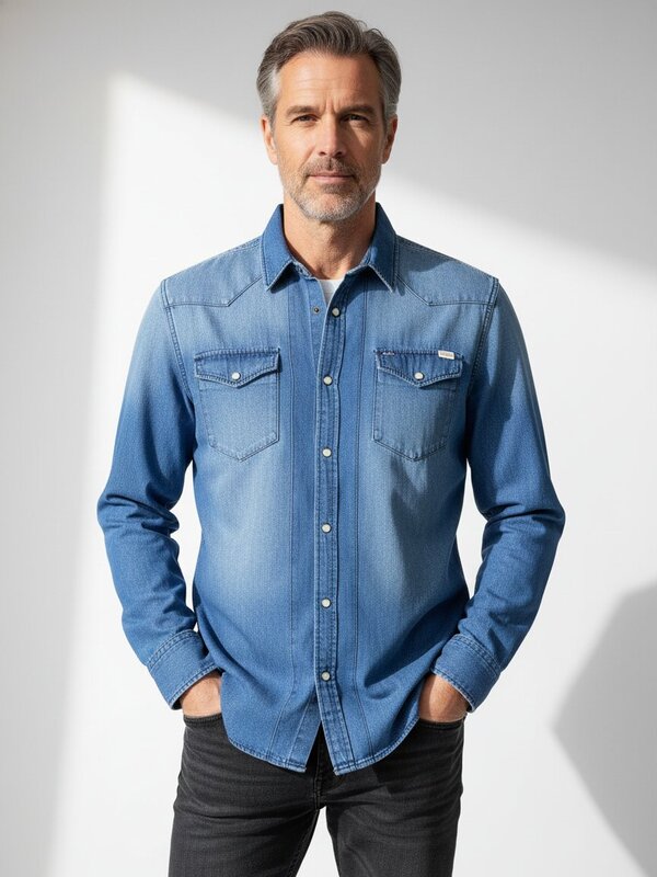 Dieses Jeanshemd besticht durch seine robuste 100-prozentige Baumwolle in einem zeitlosen Dunkelblau – ein Material, das mit jeder Wäsche an Charakter gewinnt. Der Griff ist angenehm griffig, die Verarbeitung solide; der Stoff sitzt körpernah ohne zu binden und behält seine Form über lange Zeit. Mit Kentkragen, beidseitigen Brusttaschen und praktischen Druckknöpfen funktioniert das Hemd mühelos im Alltag – ob casual zum Wochenende oder layerbar unter Pullovern in der kälteren Jahreszeit. Die Sportmanschette ermöglicht flexibles Hochrollen und passt zum Regular Fit, der breiten Schultern Raum gibt und gleichzeitig eine klare Silhouette bewahrt. MUSTANG steht seit 1948 für deutsches Denim-Handwerk mit amerikanischem Geist – authentisch, ohne Umschweife, für Männer, die ihren eigenen Weg gehen.Unser Tipp: Kombinieren Sie das Hemd mit einer dunklen Chino und braunen Chelsea Boots für einen zeitgemäßen Herbst-Look, oder tragen Sie es offen über einem cremefarbenen Longsleeve für zusätzliche Wärmeschichten.