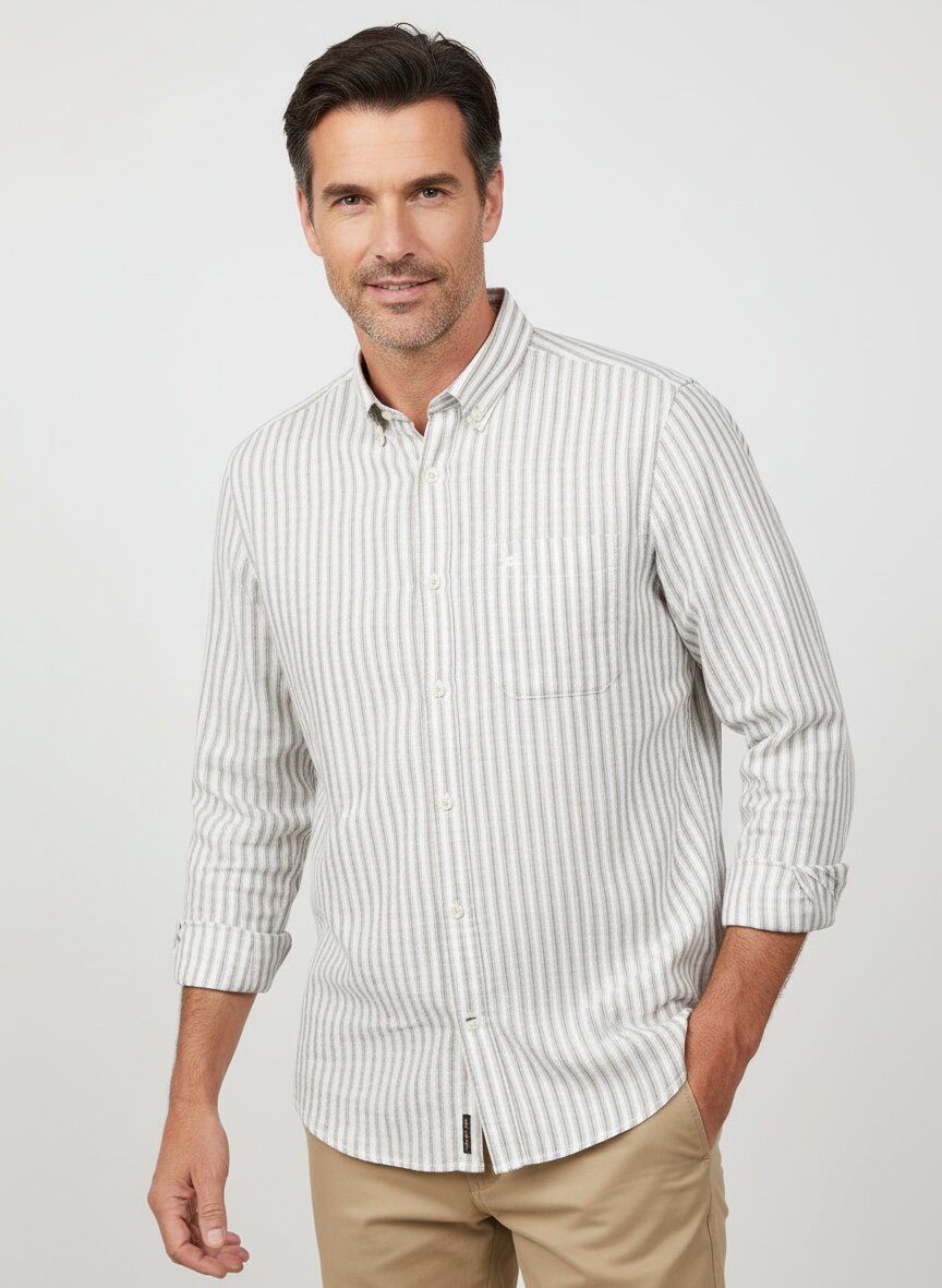 Hemd Liam, Regular, Reines Leinen, Button-Down, greige
