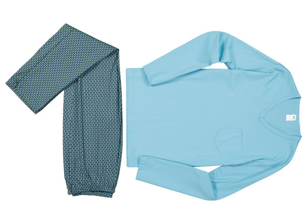 Pyjama, Baumwoll-Jersey, hellblau-dunkelblau