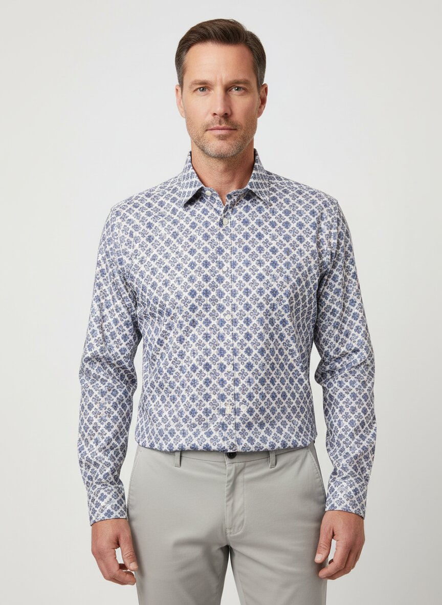 Ein feines, durchgehendes Muster verleiht diesem Hemd Tiefenwirkung ohne aufdringliche Lautheit. Die 100% Baumwolle sitzt angenehm auf der Haut, atmet zuverlässig und fühlt sich auch nach wiederholtem Waschen noch geschmeidig an. Im Comfort Fit geschnitten, bietet das Hemd ausreichend Bewegungsfreiheit für Büro und Alltag, ohne dabei formlos zu wirken. Die weitenverstellbare Kombimanschette und der klassische Kentkragen ermöglichen flexible Styling-Optionen – vom Business-Look bis zur legeren Variante.