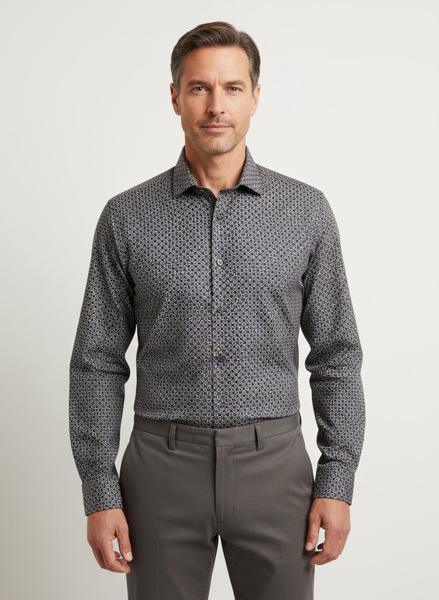 Ein subtiles, durchgehendes Muster in Dunkelgrau verleiht diesem OLYMP-Hemd dezente Struktur ohne Ablenkung. Die 100% Baumwolle sitzt hautsympathisch auf der Haut und besticht durch natürliche Atmungsaktivität – ideal für lange Arbeitstage ohne Schweißflecken. Im Body-Fit-Schnitt folgt das Hemd der Körperform präzise, ohne einzuengen, und funktioniert sowohl im Business als auch in smarter Freizeitkombi. Die weitenverstellbare Sportmanschette und der klassische Kentkragen bieten maximale Flexibilität für verschiedene Styling-Optionen. OLYMP steht seit 1951 für schwäbische Hemdenkunst – jedes Stück wird mit Fokus auf Bügelleichtigkeit und Langlebigkeit gefertigt, ohne dabei auf elegante Formensprache zu verzichten. Das Hemd trägt das OEKO-TEX®-Siegel und bestätigt damit höchste Schadstofffreiheit.Unser Tipp: Kombinieren Sie das Hemd mit einer anthrazitfarbenen Anzughose und Lederschuhen für einen souveränen Business-Look, oder tragen Sie es offen über einem weißen T-Shirt für urbane Leichtigkeit in der wärmeren Jahreszeit.