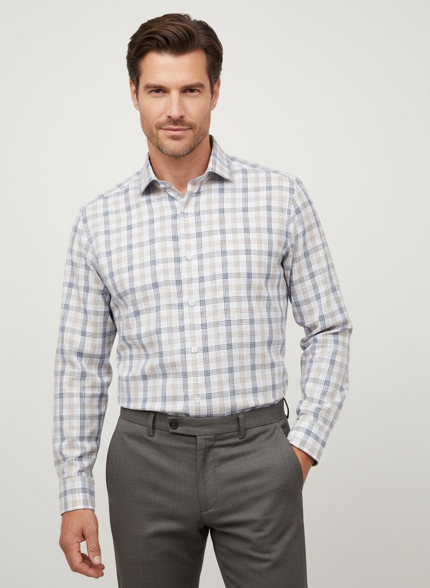 Silbergrau kariert – Bügelfreiheit mit eleganter Struktur