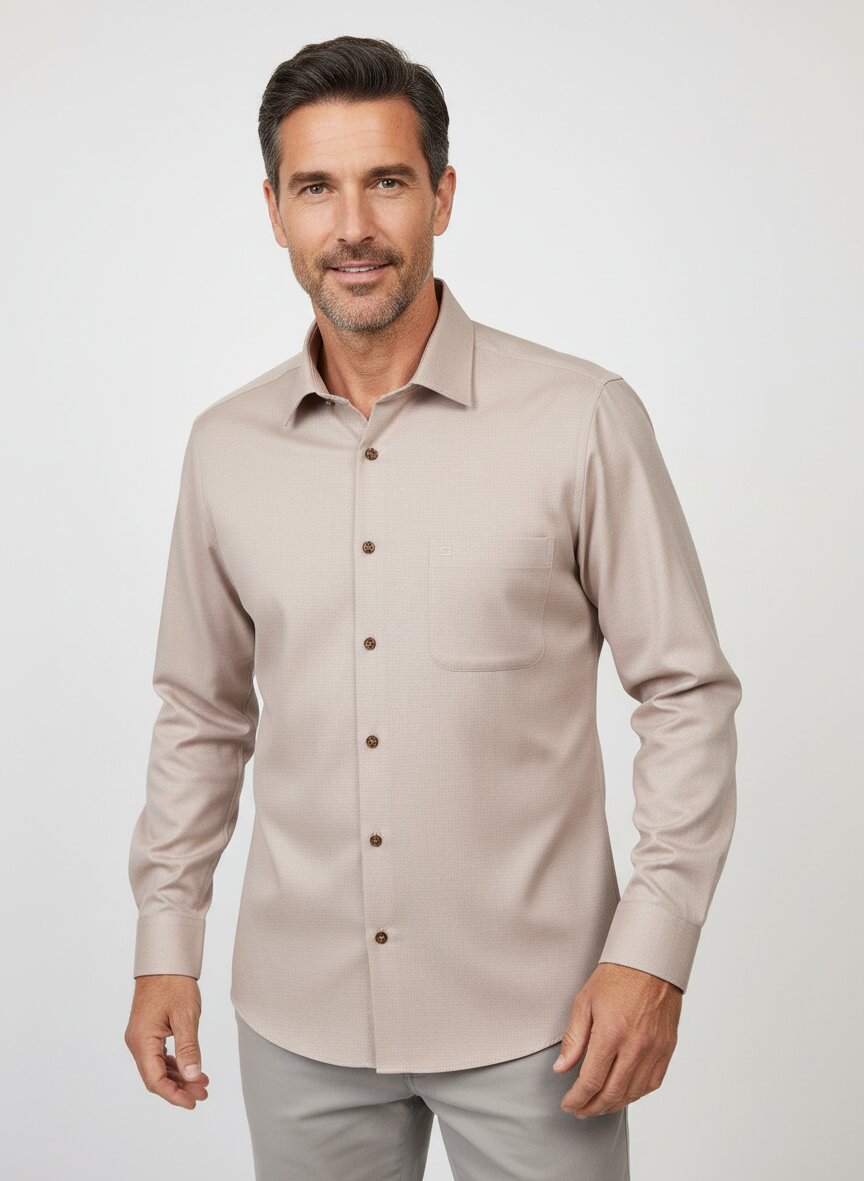 Nougat meliert mit bügelfreier Eleganz und verstellbarer Kombimanschette