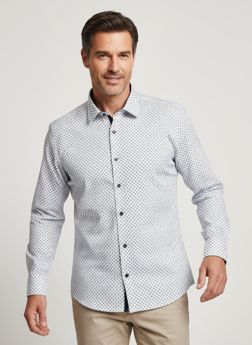 Hemd floral allover in Bicolor geprintet mit Brusttasche und weitenverstellbarer Kombimanschette von OLYMP