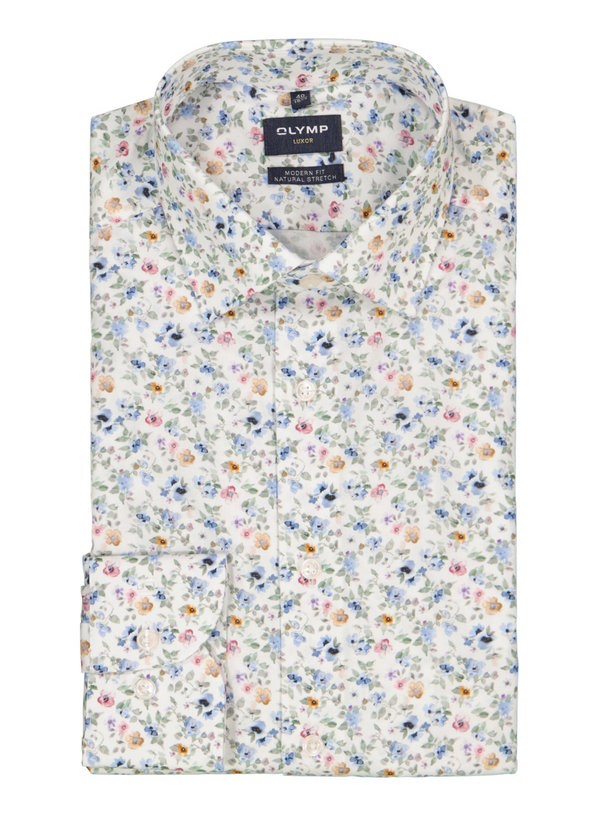 OLYMP, Hemd, New Modern, Baumwolle, Kent, Extra langer Arm, weiß floral