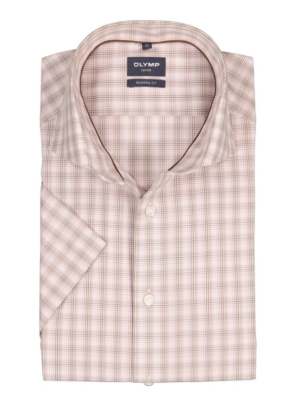 OLYMP, Kurzarmhemd, New Modern, Baumwolle, Kent, hellrosé kariert
