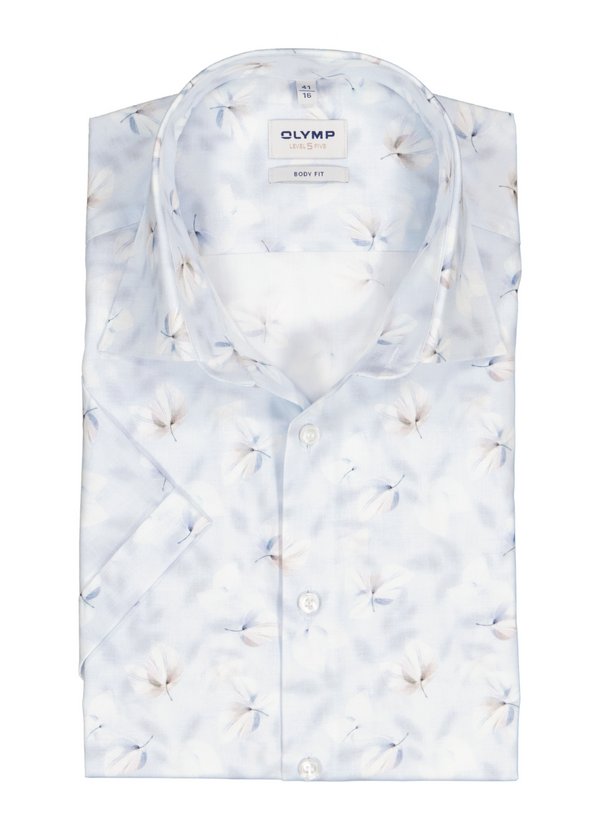 OLYMP, Kurzarmhemd, Body Fit, Baumwoll-Stretch, Kent, bleu floral