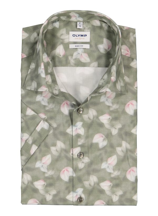 OLYMP, Kurzarmhemd, Body Fit, Baumwoll-Stretch, Kent, oliv floral
