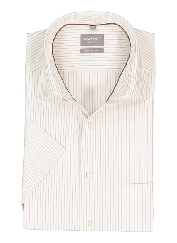 OLYMP, Kurzarmhemd, Comfort, Baumwolle, Kent, Brusttasche, natur gestreift