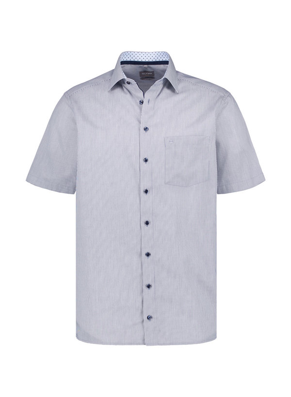 OLYMP, Kurzarmhemd, Comfort, Baumwolle, Kent, Brusttasche, marine gestreift