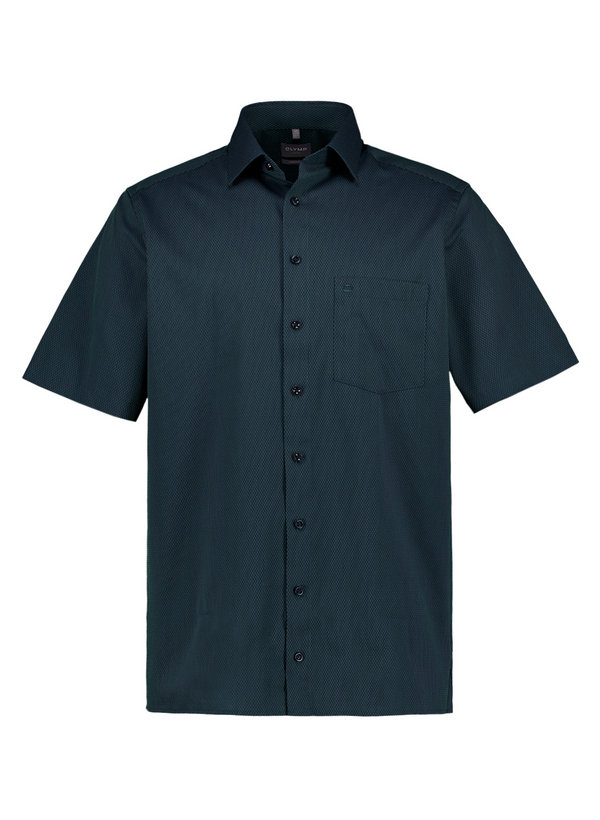 OLYMP, Kurzarmhemd, Comfort, Baumwolle, Kent, Brusttasche, grün gemustert