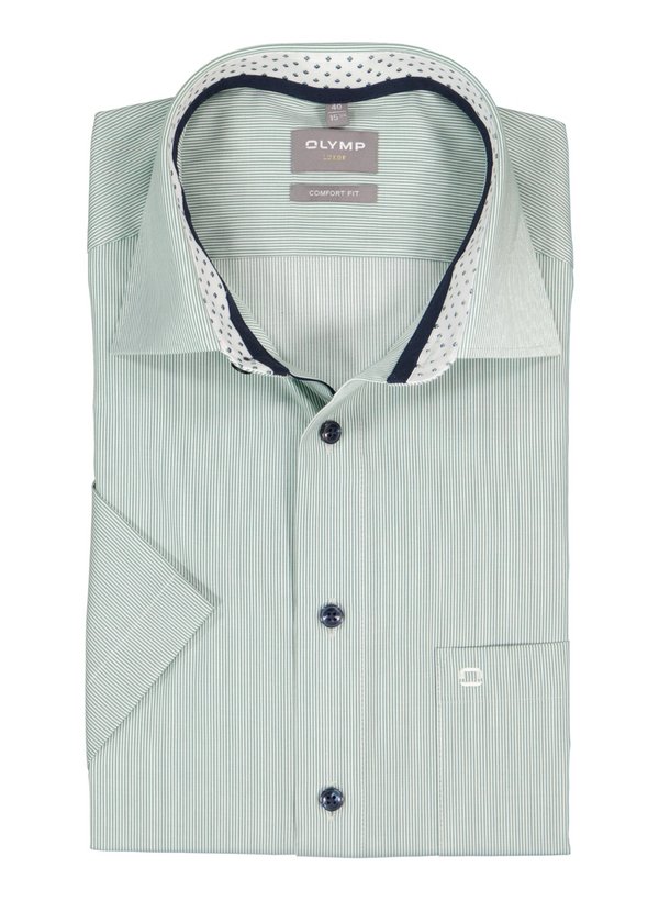 OLYMP, Kurzarmhemd, Comfort, Baumwolle, Kent, Brusttasche, hellgrün gestreift
