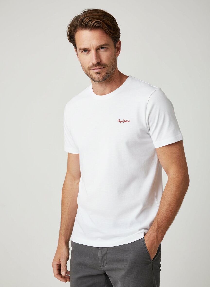 Das T-Shirt Contrast besticht durch seine klare Silhouette und die dezenten Kontrastdetails an den Nähten, die dem schlichten Design eine handwerkliche Note verleihen. Die nachhaltig angebaute Baumwolle schmiegt sich angenehm an die Haut und bietet den perfekten Tragekomfort für warme Tage – ohne dabei an Robustheit zu verlieren. Der verstärkte Nackenausschnitt sorgt dafür, dass das Shirt auch nach häufigem Tragen seine Form behält und nicht ausleiht. Mit seinem Rundhals-Ausschnitt passt es mühelos zu Jeans, Chinos oder Shorts und funktioniert gleichermaßen als Basis-Layer wie als eigenständiges Statement-Piece. Pepe Jeans verbindet seit 1973 rebellischen Londoner Spirit mit zeitloser Qualität – hier zeigt sich das in der bewussten Wahl nachhaltiger Materialien und dem Verzicht auf überflüssige Details.Unser Tipp: Kombinieren Sie das weiße Contrast-Shirt mit einer dunklen Denim-Jacke und weißen Sneakern für einen urbanen Evergreen-Look, der von Frühjahr bis Sommer funktioniert.