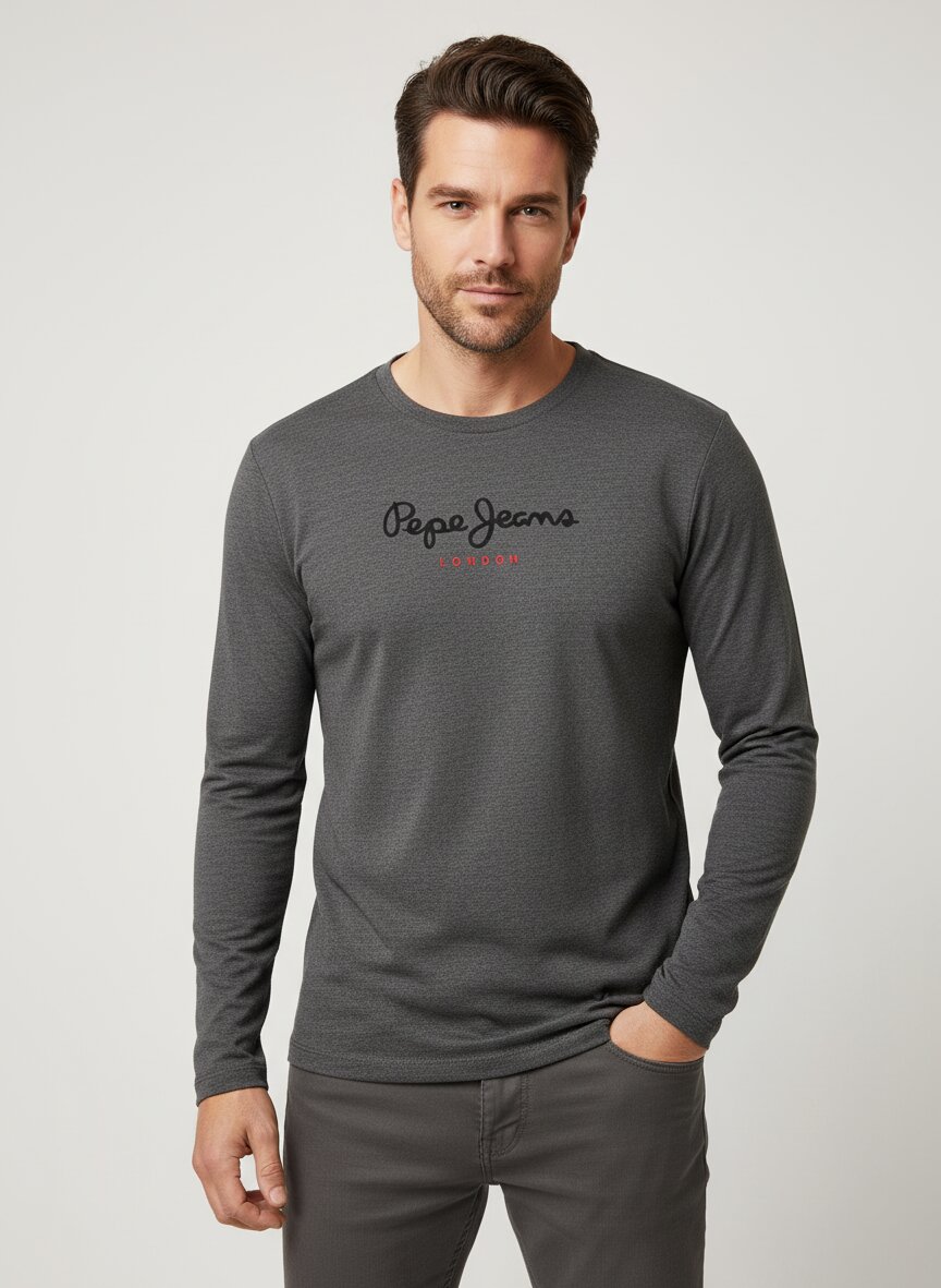 Pepe Jeans, Longsleeve Eggo, Regular Fit, Baumwolle, grau